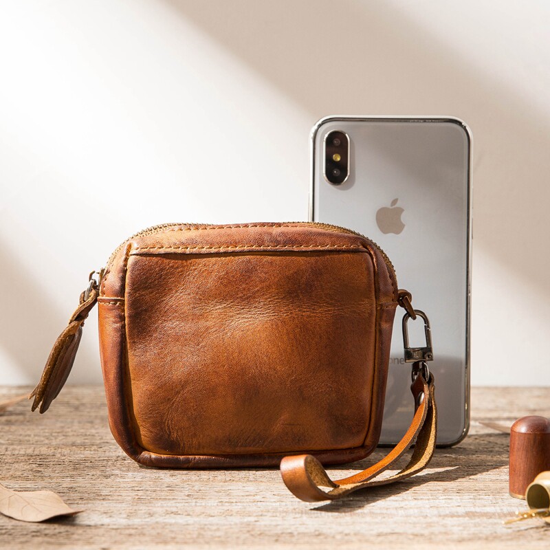 2022 new retro-rooted tanning leather wallet woman doing old small zero wallet genuine leather laced man card bag key bag man