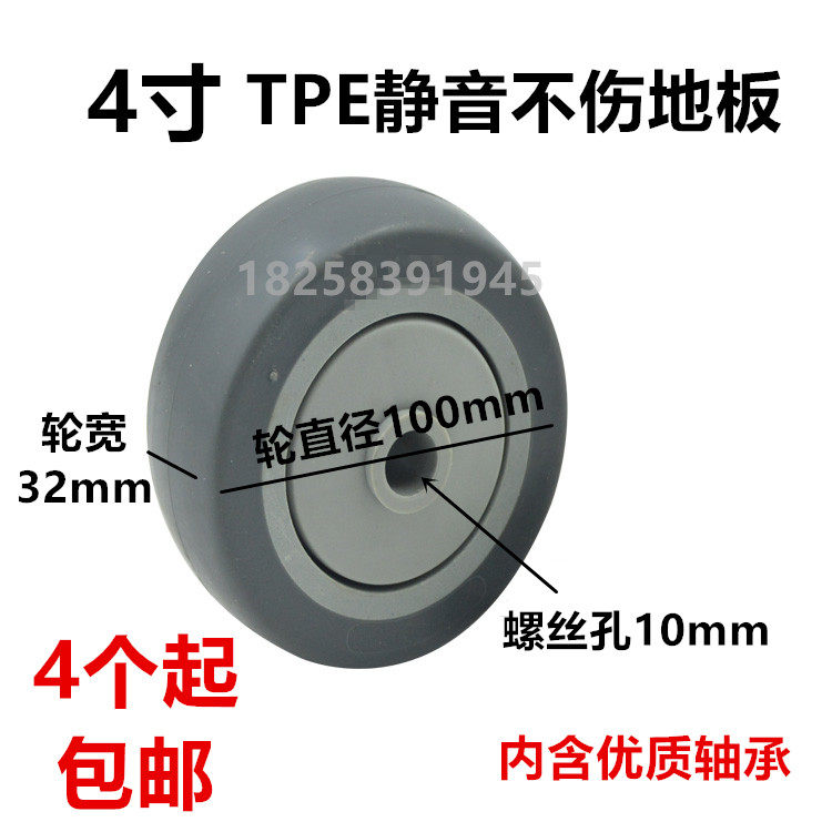 Castors 3 inch 4 inch 5 inch universal wheel mute soft rubber single wheel with bearing anti-winding wheel wheel 4 only