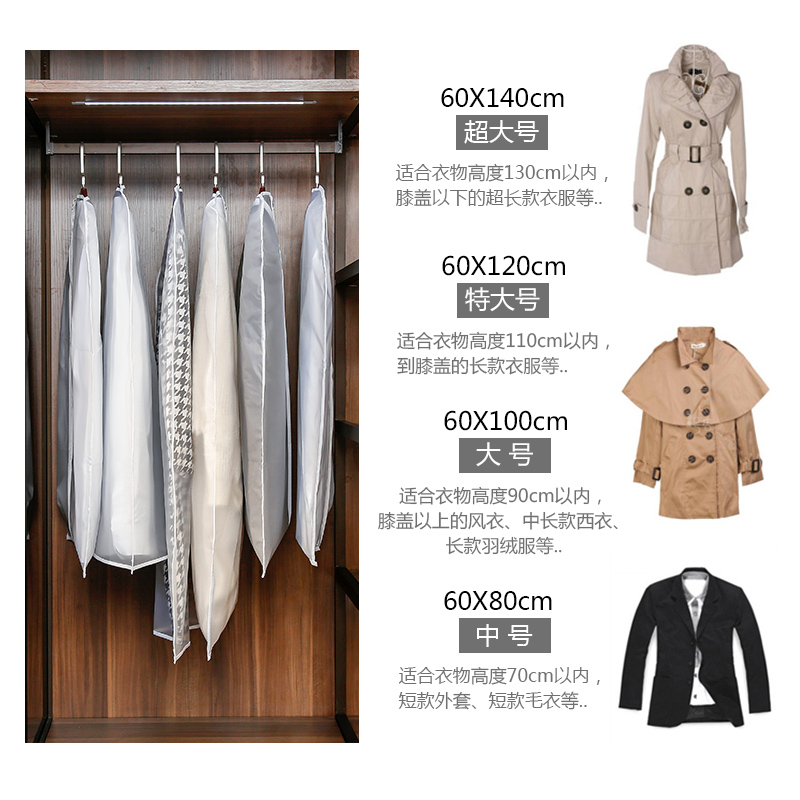 Clothing Dust Cover HANGING CLOTHING TRANSPARENT DUST-PROOF BAG SUIT SLEEVE HANGING CLOTHES BAG FOR HOME LARGE CLOTHING HOOD CONTAINING CLOTHING BAG