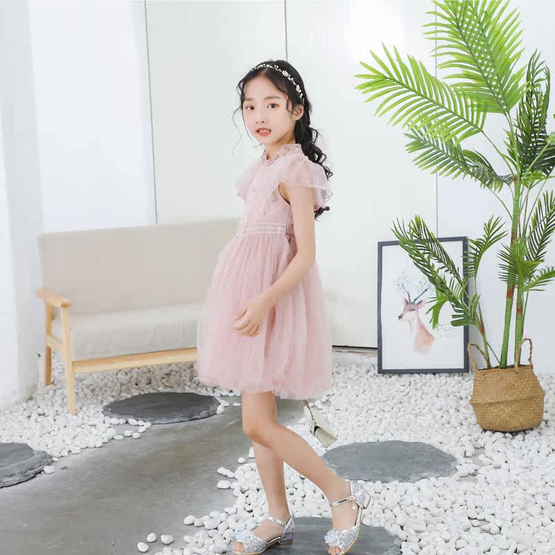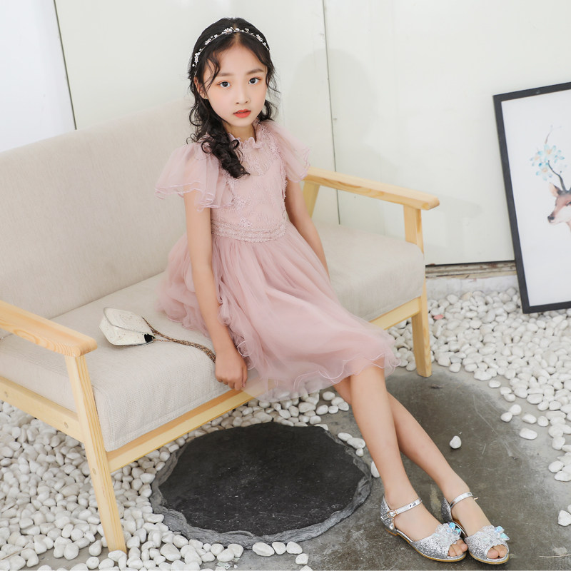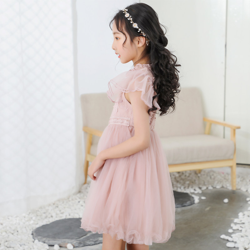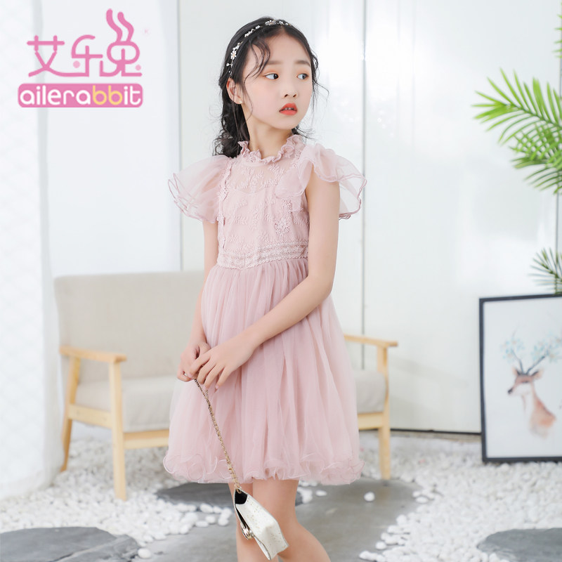 Girls Lace dress summer 2020 new Korean embroidery yarn skirt children's skirt girl princess skirt short sleeve