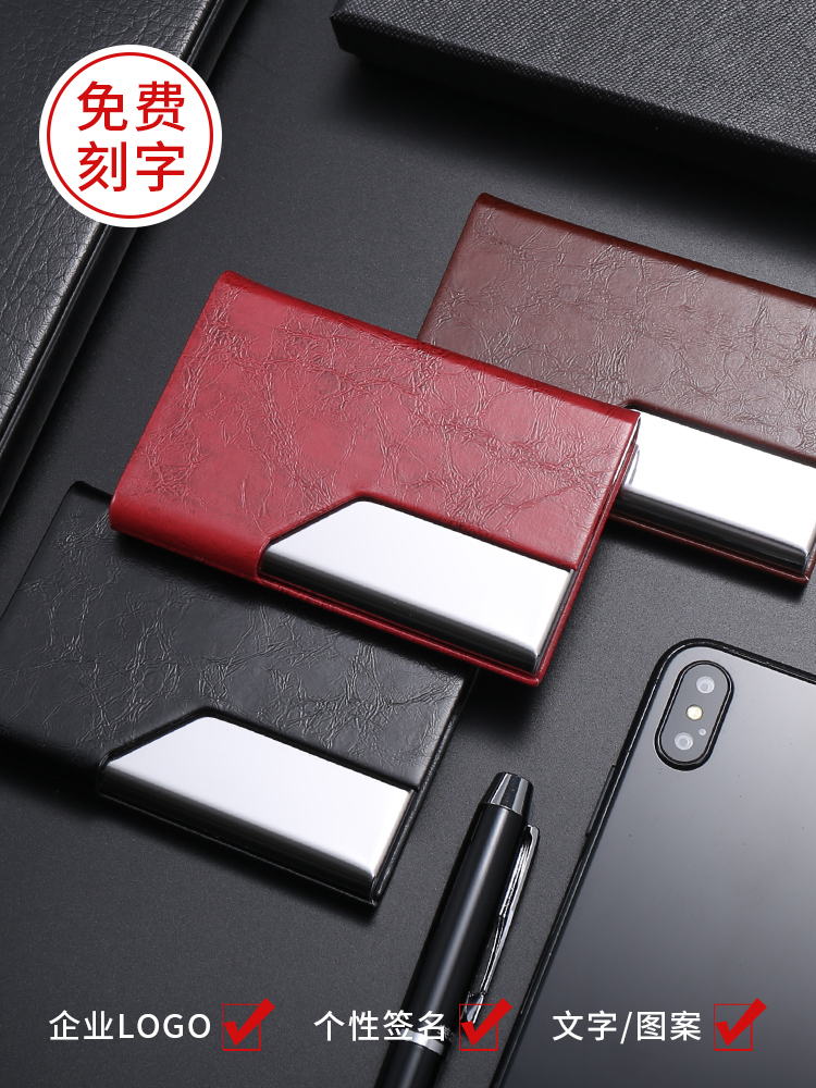 Business business card holder leather face men's business card box female portable card bag Metal Large capacity business card credit card storage box company Enterprise logo customized business card box lettering