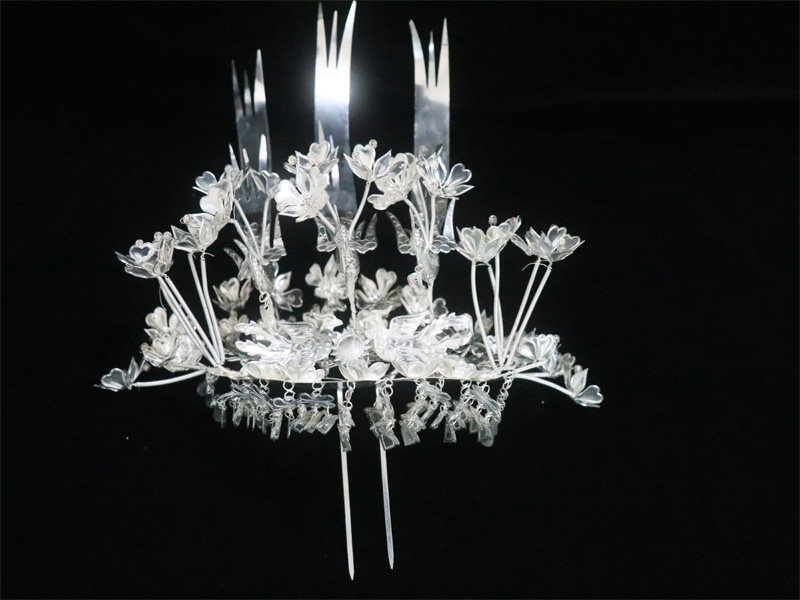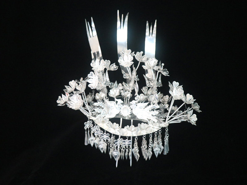 Guizhou ancient clothes clothing women's white 2020 Summer silver adorned Miao ethnic group New hair Hairpin National dance headwear