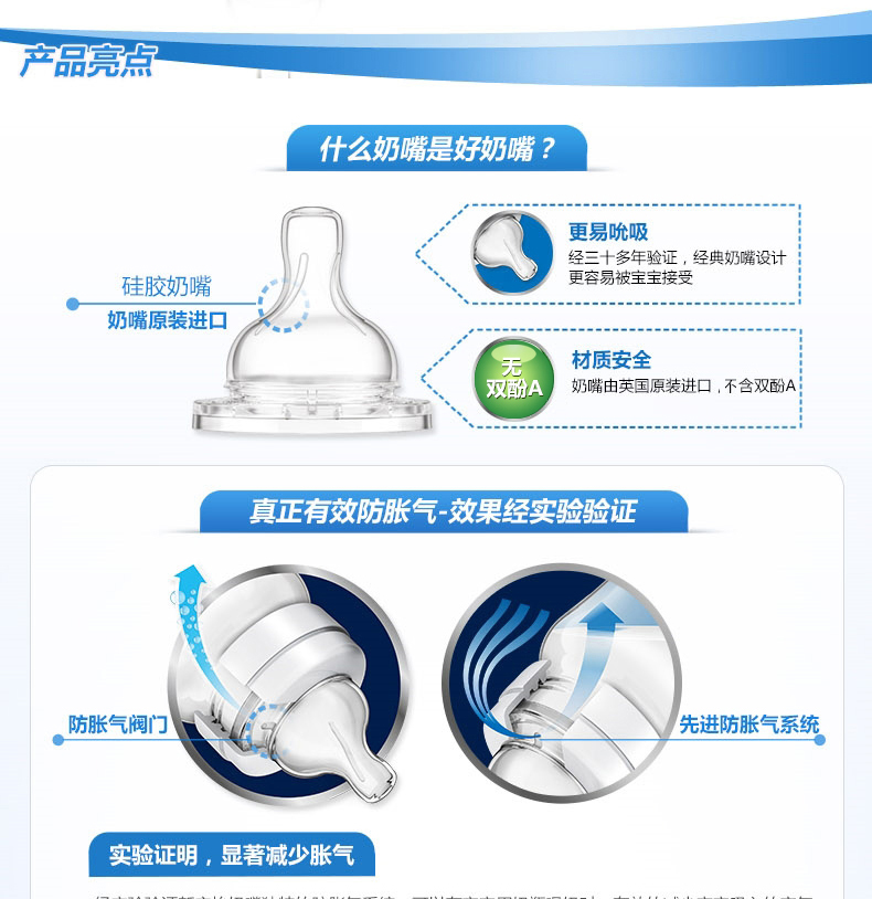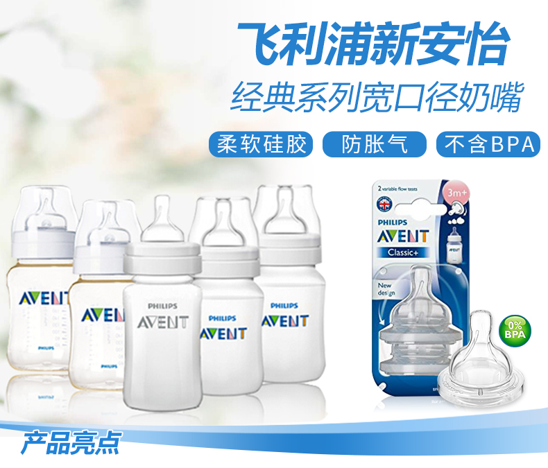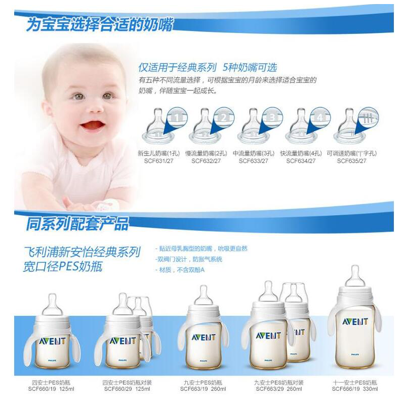 Philips New Anyi Classic Wide Aperture Milk Bottle 1 Hole 2 Holes 3 Holes 4 Holes Throttle Anti-Flatuled Gas Old Original Dress Pacifier