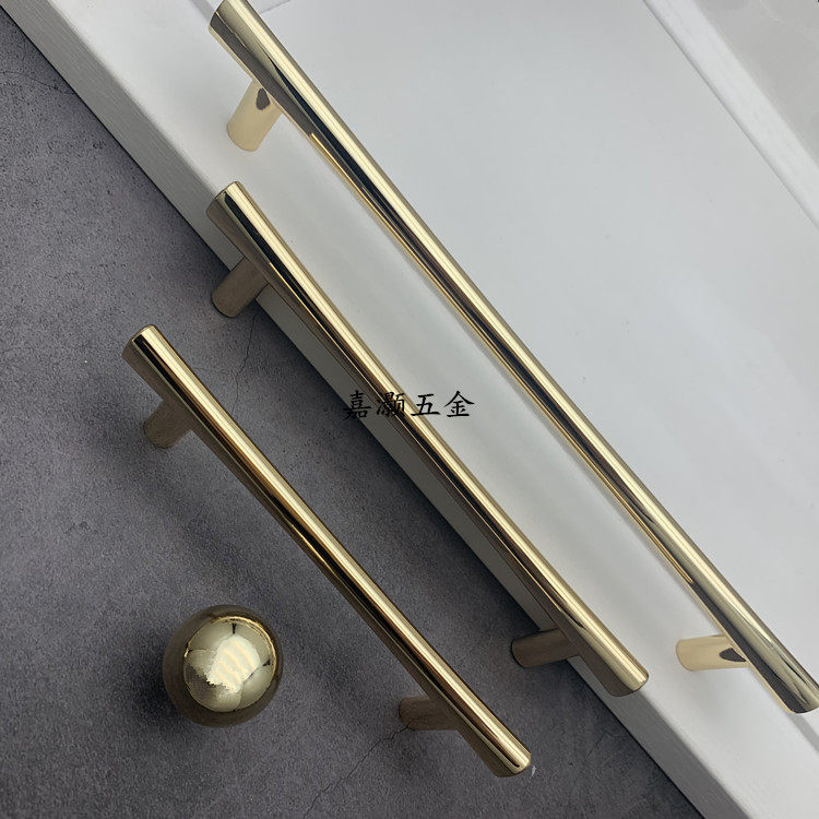 High-end modern minimalist light luxury bright K gold solid drawer handle round ball round bar hook cabinet door handle