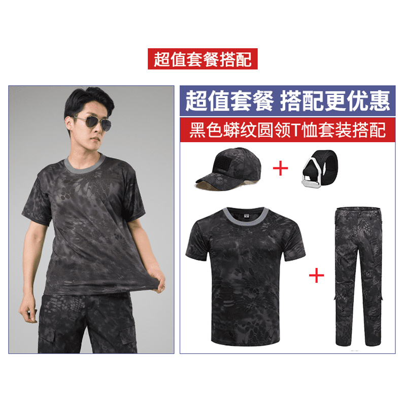 Camouflage quick-dry T-shirt men's and women's summer new camouflage short sleeve suit student military training uniform outdoor military fan python pattern T-shirt