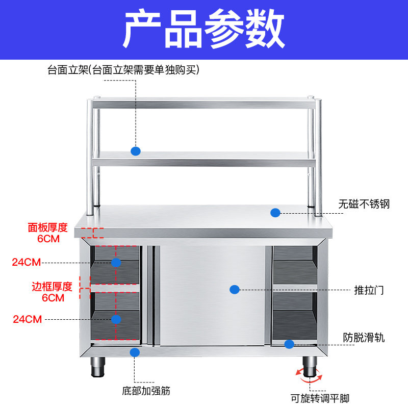 Sliding Door Stainless Steel Bench Ramen Kitchen Special Operation Containing Cabinet Cut Vegetable Table Case Board Beat-up Commercial