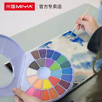 Mia semi-dry solid watercolor paint set 24 colors 38 colors watercolor painting students with hand-painted powder gouache box portable painting tools children's drawing beginners special art
