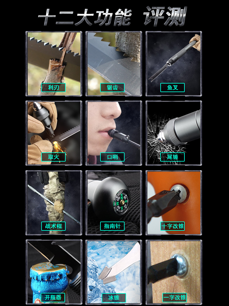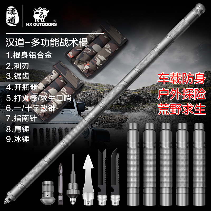 Handau outdoor multifunctional tactical stick knife integrated anti-body weaponry and arms folding vehicle portable camping multipurpose