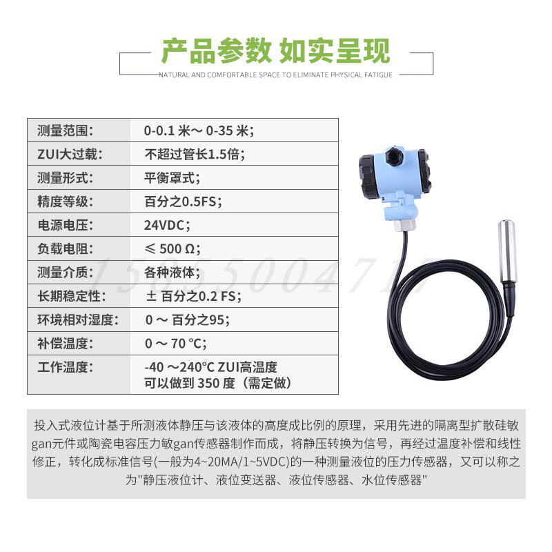 Input-type liquid level gauge Anhui Tiankang Liquid level sensor water level display water tank control transmitter 4-20mA