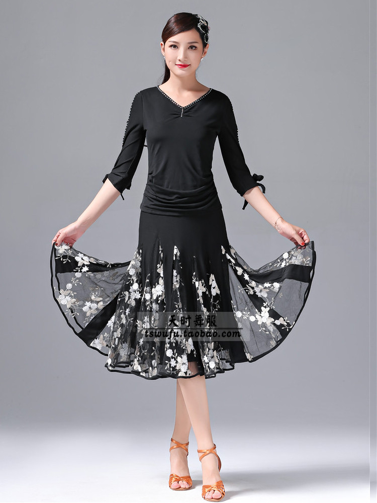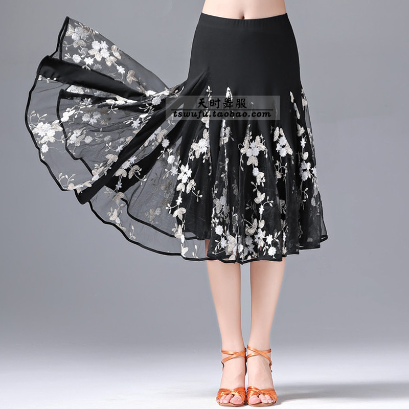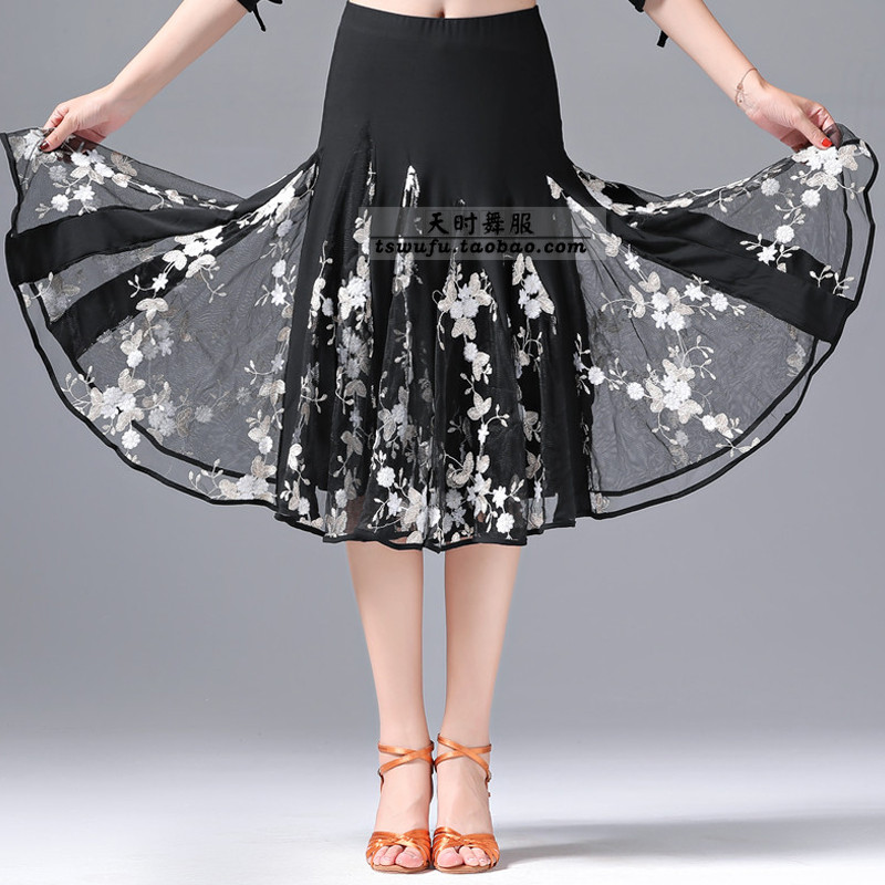 Flowers National Mark Dance Skirt Half Body Dress Social Dance Dresses New Women Morden Dance Dresses Waltz Practice Big Hem Skirts