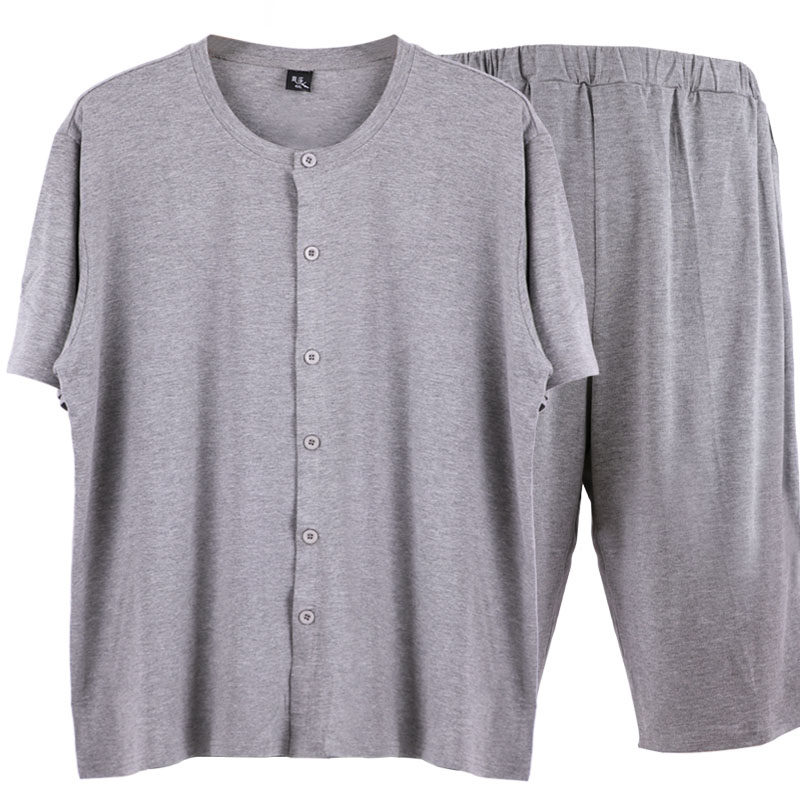 Men's short-sleeved cardigan jacket modal cotton middle-aged and elderly plus fat size 200 jin pajamas pajamas homewear suit summer