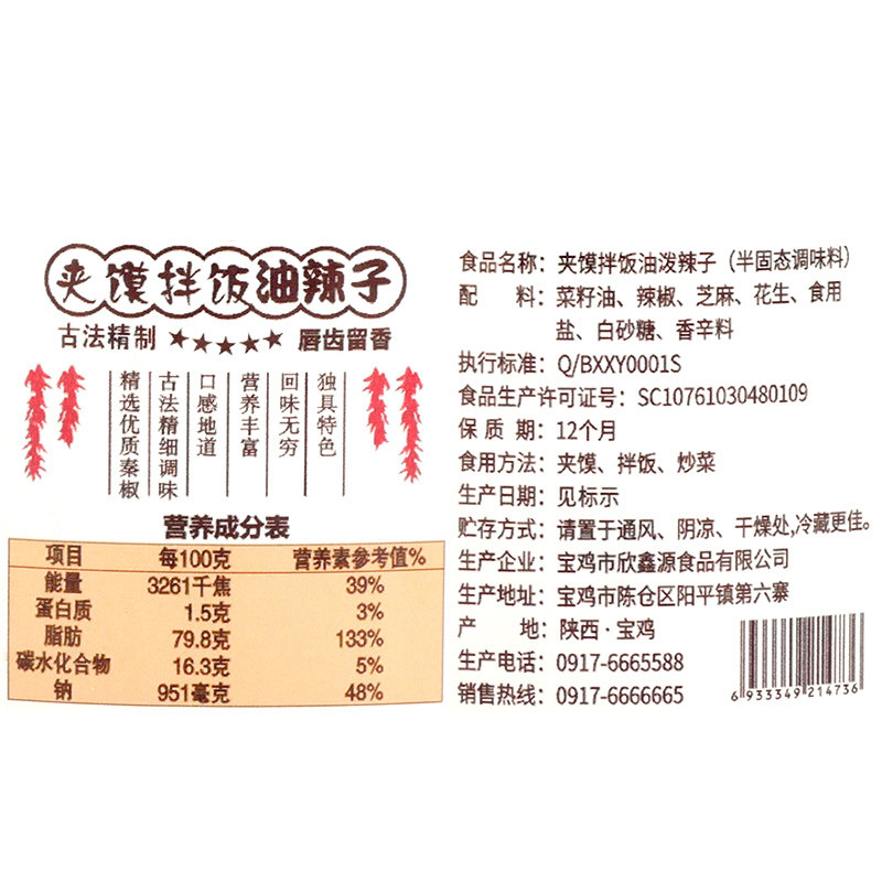 Qin Sheng Oil Spicy bun bibimbap spicy sauce 2 cans of Shaanxi specialty chili oil
