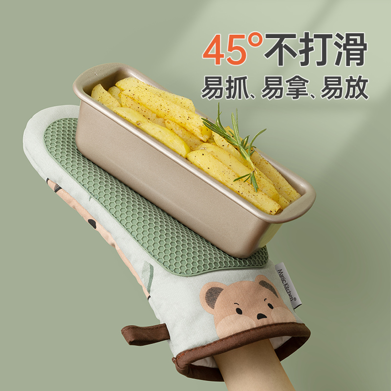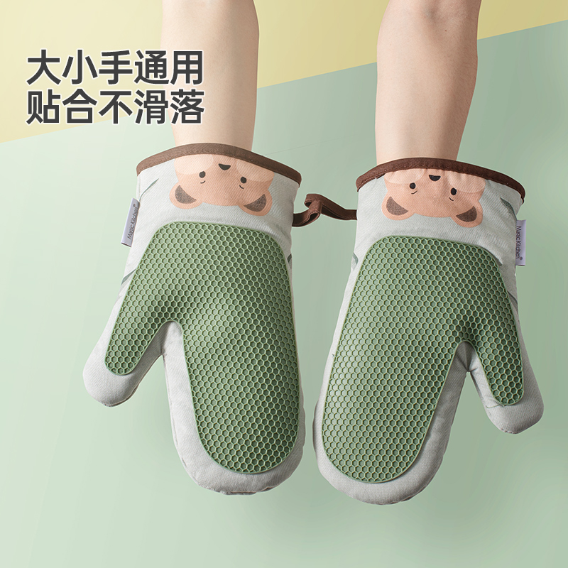 Magic kitchen silicone anti-scalding insulation gloves Oven microwave oven gloves High temperature thickening baking heat-proof five fingers