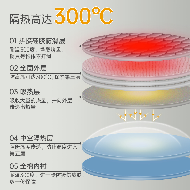 Nordic green-300°heat insulation(pair) Nordic pink-300°heat insulation (pair) (New)Nordic pink-300°heat insulation (pair) Five finger gloves-silicone-gray