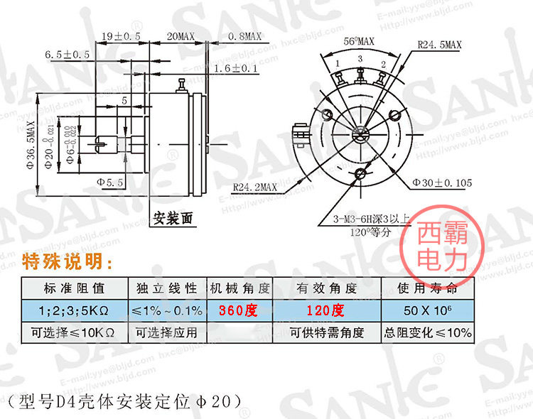 Ningbo Beilun Sanhe WDY35D4-120 degree 5K ohm 1% linearity sensor conductive plastic corner position
