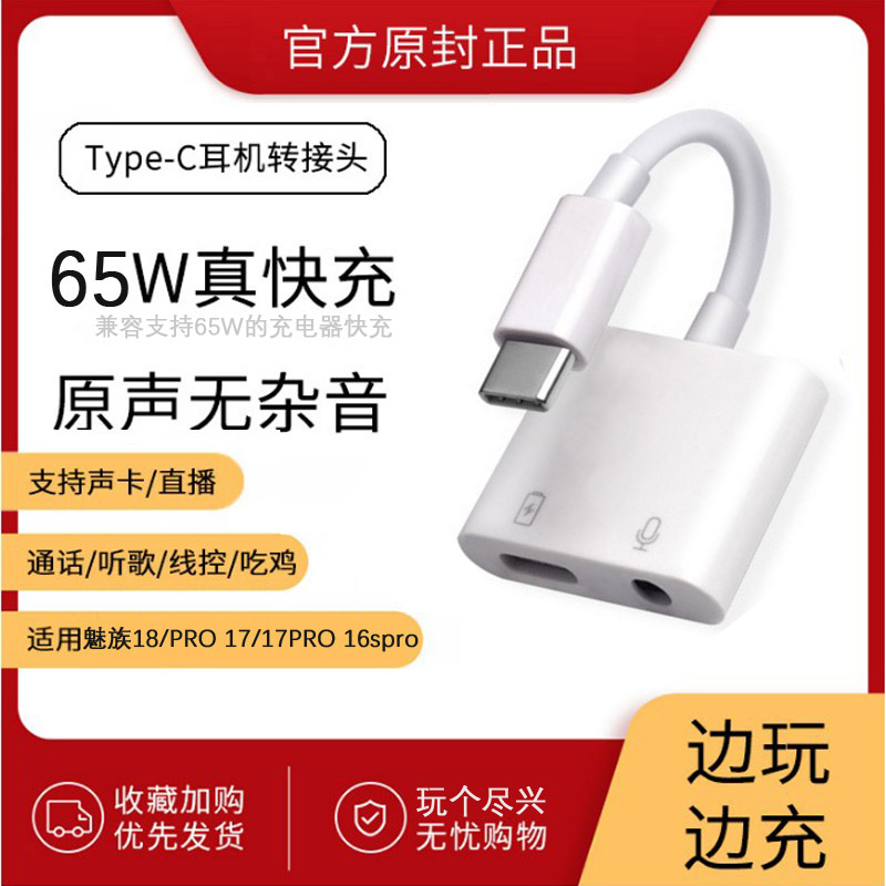 Only Meizu HIFI decoder ear amplifier Meizu 18 18PRO headset Digital audio 17 adapter 2-in-1 charging