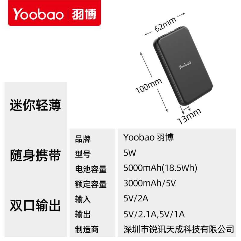 Yubo 5000mAh mobile charging ultra-thin mini compact portable suitable for Apple Huawei Android mobile phone mobile charging mini cute girl creative Huawei vivo can be on the plane