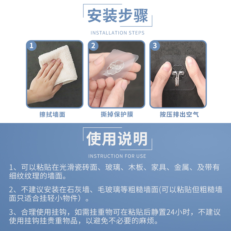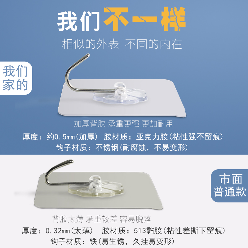Sticky Hook Domestic Powerful Suction Wall Sticking Hook Wall-mounted Adhesive Wall Hanger Glued Viscose Household no-mark toilet Stained-Taobao
