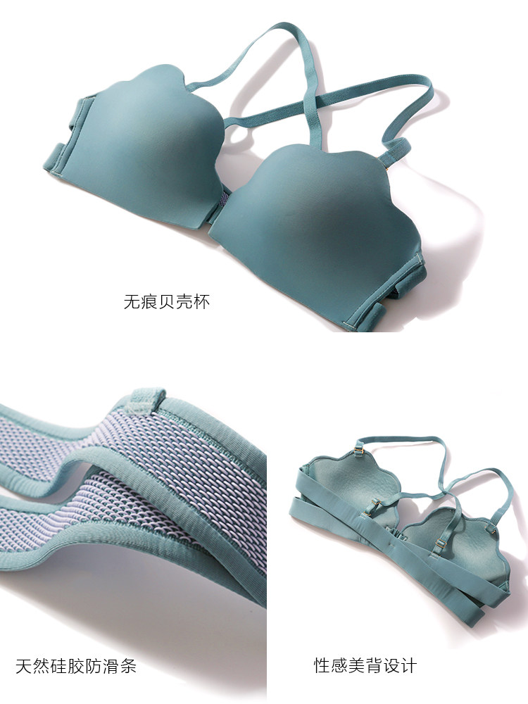 Breasted underwear Female Dew Shoulder small breasts Gathered Wrap Breast No Steel Ring Front Buttoned Beauty Back Without Shoulder Strap Lingerie Suit