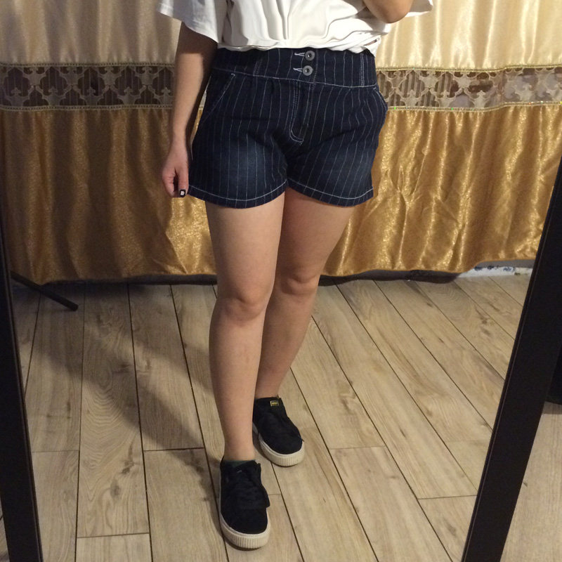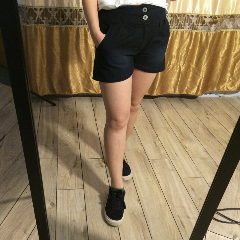 Super-valued foreign trade spring and summer new black denim shorts women tightness waist loose elastic hot pants students 100 hitch