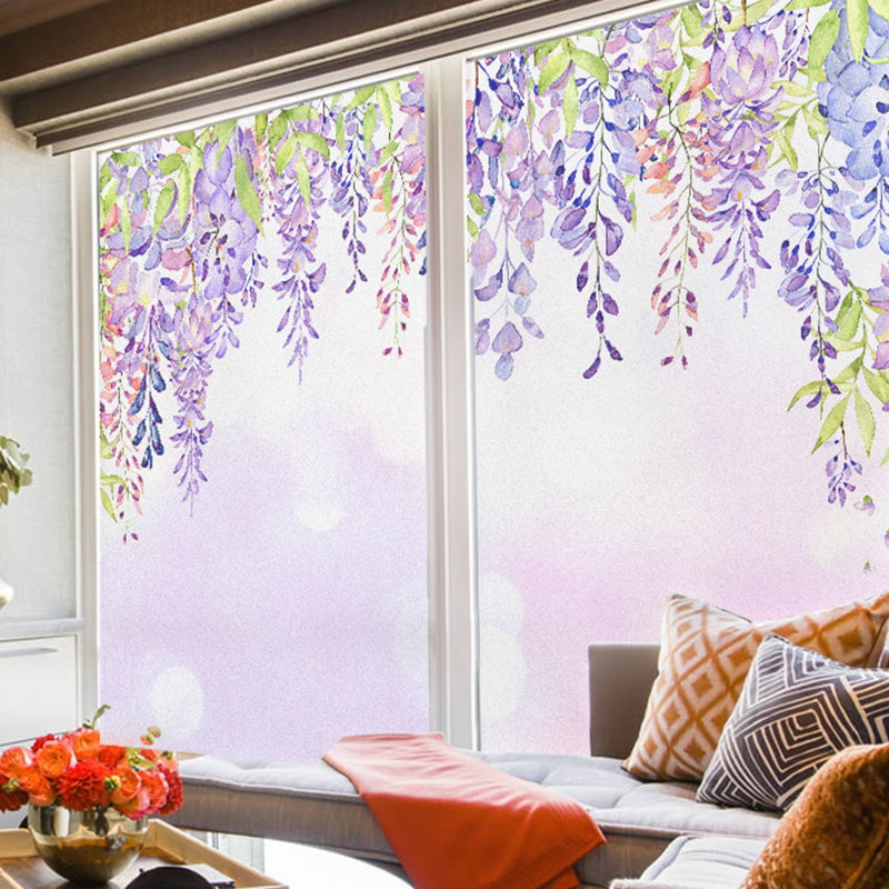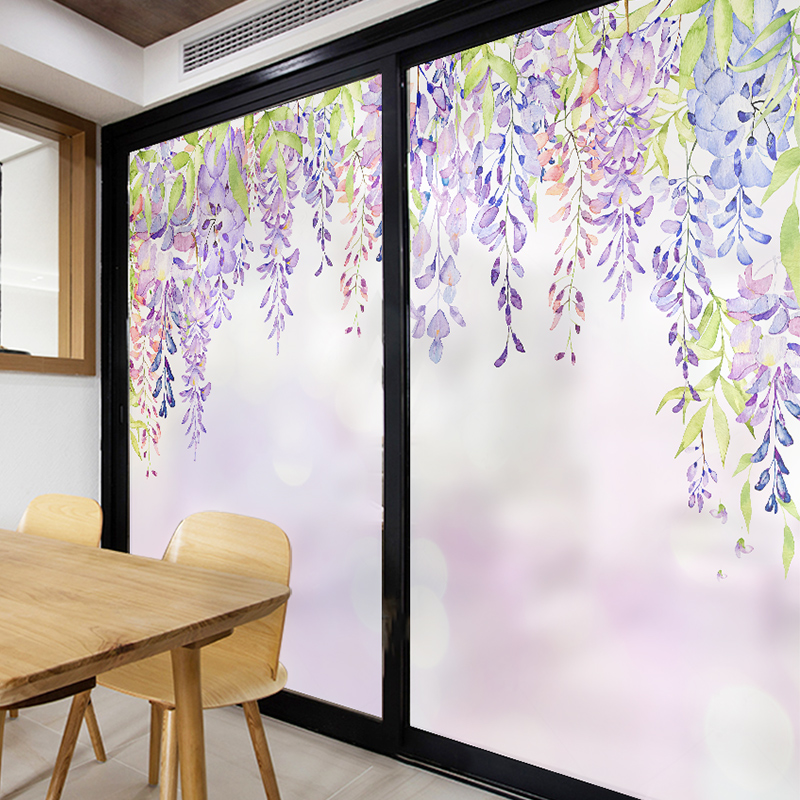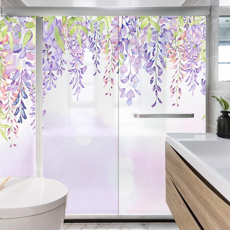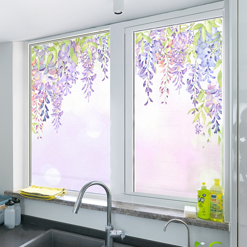 Wisteria sunscreen window glass stickers Balcony frosted glass stickers Bathroom powder room window stickers Translucent opaque