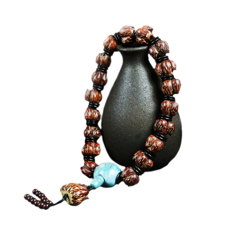 Collection-grade blood-dropping lotus bodhi eighteen sons holding men's hand strings Tibetan-style carved Buddha beads hand-held female chanting Buddha