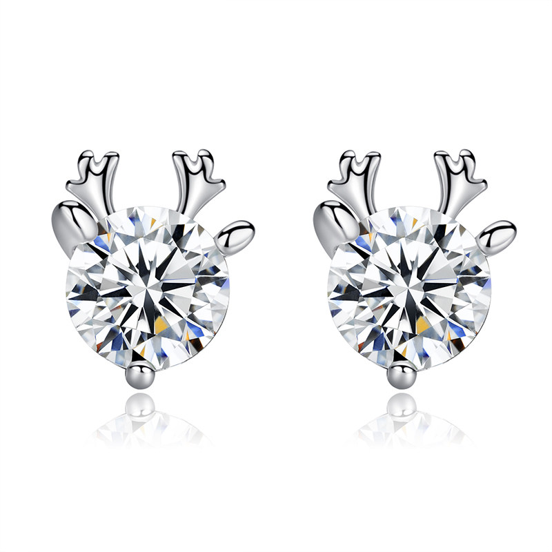 All the way to you PT950 platinum deer ear needle female Korean high-grade sense 18K white gold earrings net red temperament earrings