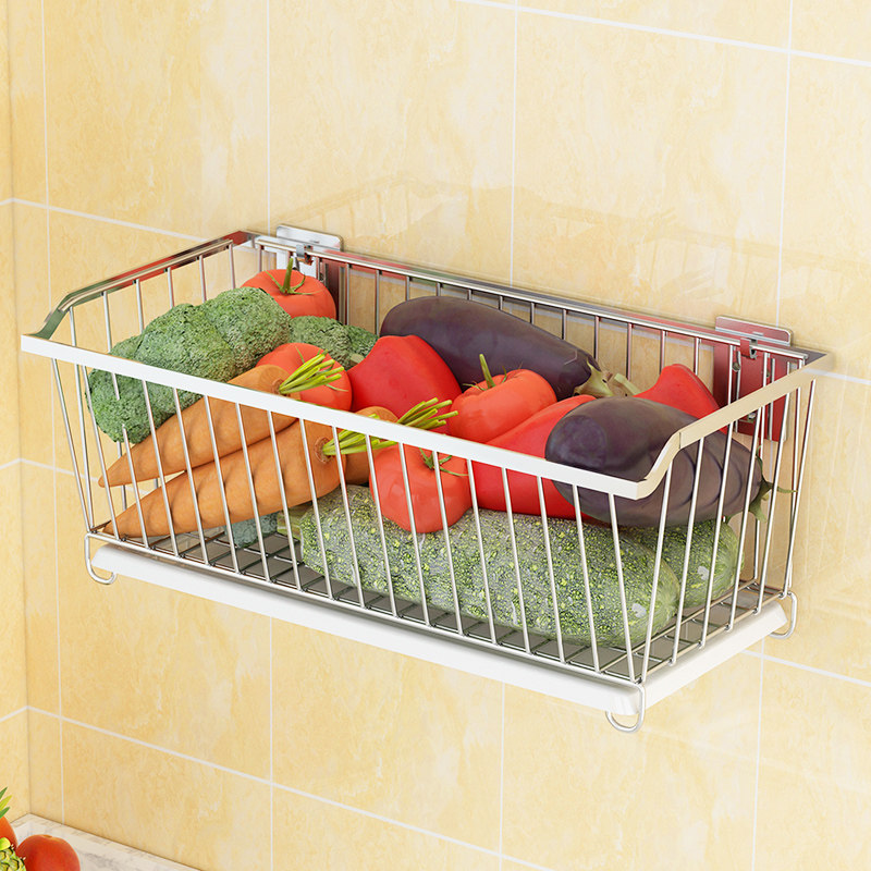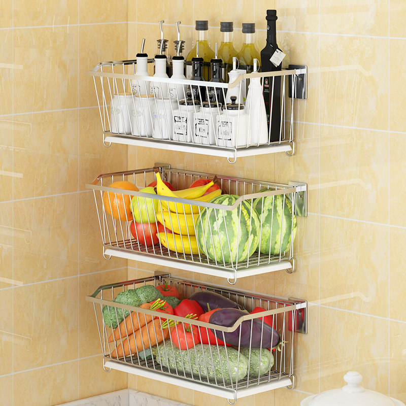 304 Stainless Steel Kitchen Vegetable Shelving free of perforated wall-mounted domestic fruit containing basket Leaching vegetable shelf
