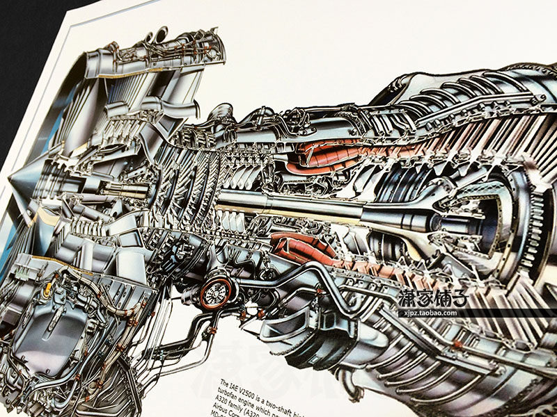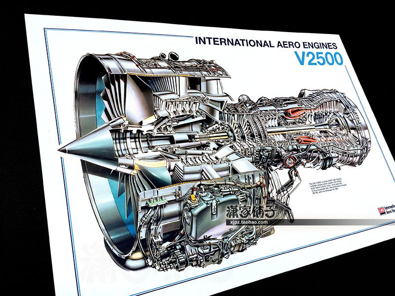 International Aviation Engine IAE V2500 Engine Aviation Engine Structure Diagram Wall Chart Poster Mounted