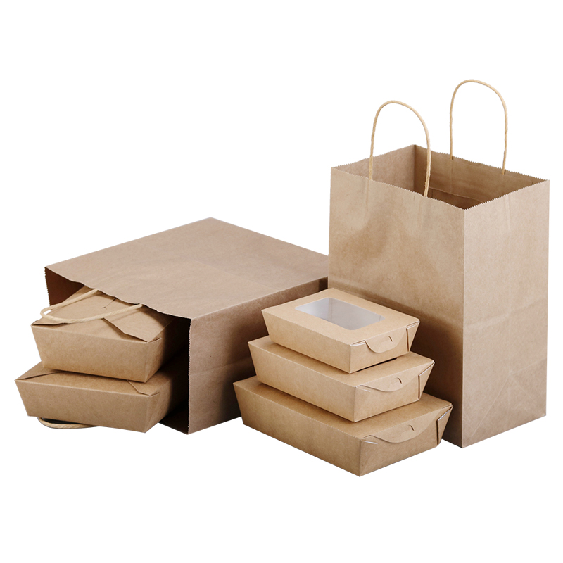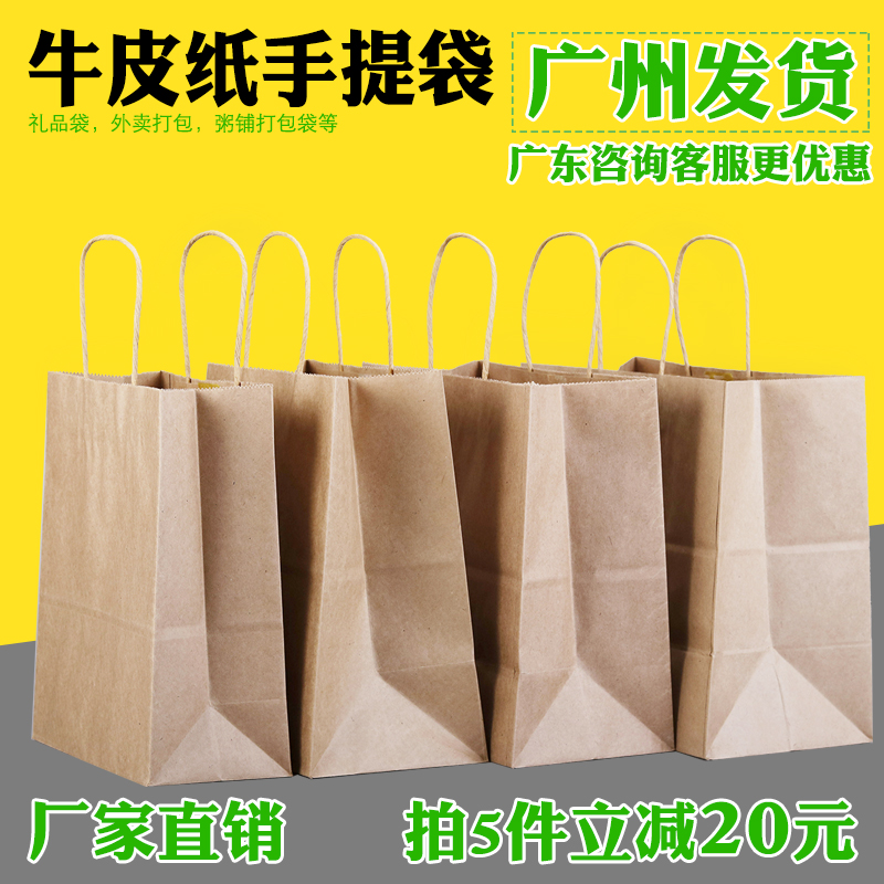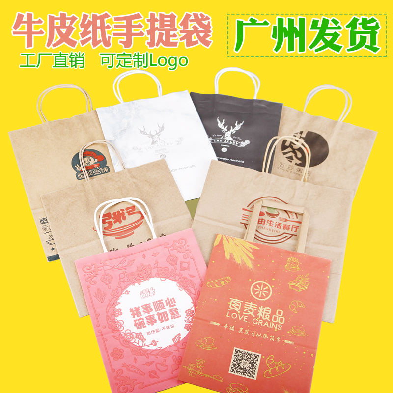 Kraft Paper Bag Handbag Takeaway Packing Bag Fruit Salad Congee Milk Tea Baggie Bag paper bags Sub-set to logos