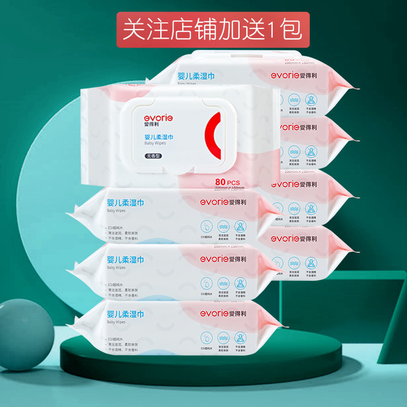 Edley baby wipes baby skin care wipes newborn soft 7 packs 80 pieces pay attention to Shop 8 packs
