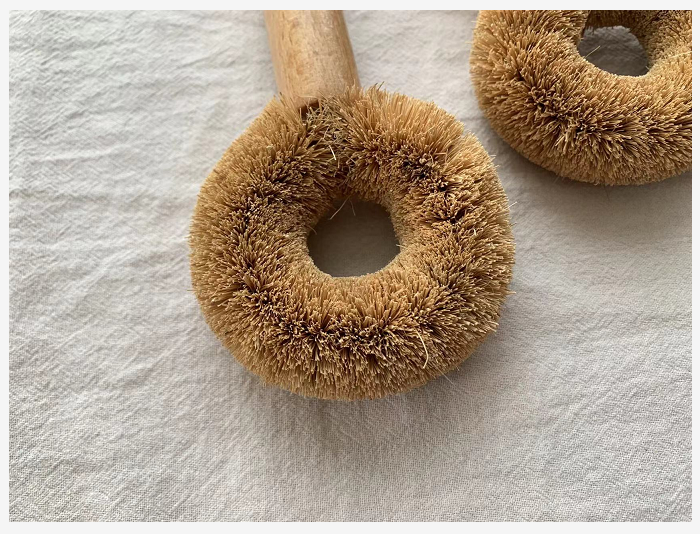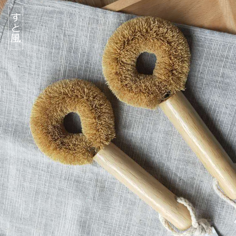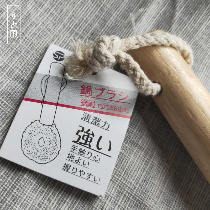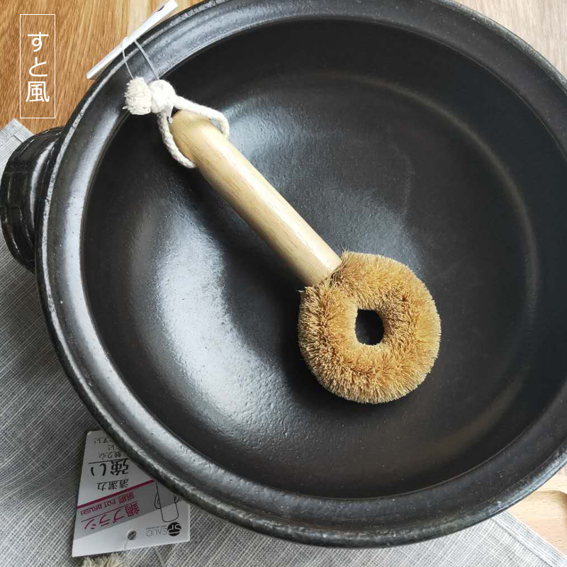 Japan SP Casserole Frying Pan CLEANING BRUSH COCONUT PALM NOT STAINED WITH OIL HEARTH LONG HANDLE BRUSH CUP BRUSH