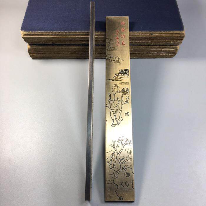 Antique craft gift decoration stationery ornaments brass large ruler vintage paperweight pair listen to the piano to visit friends