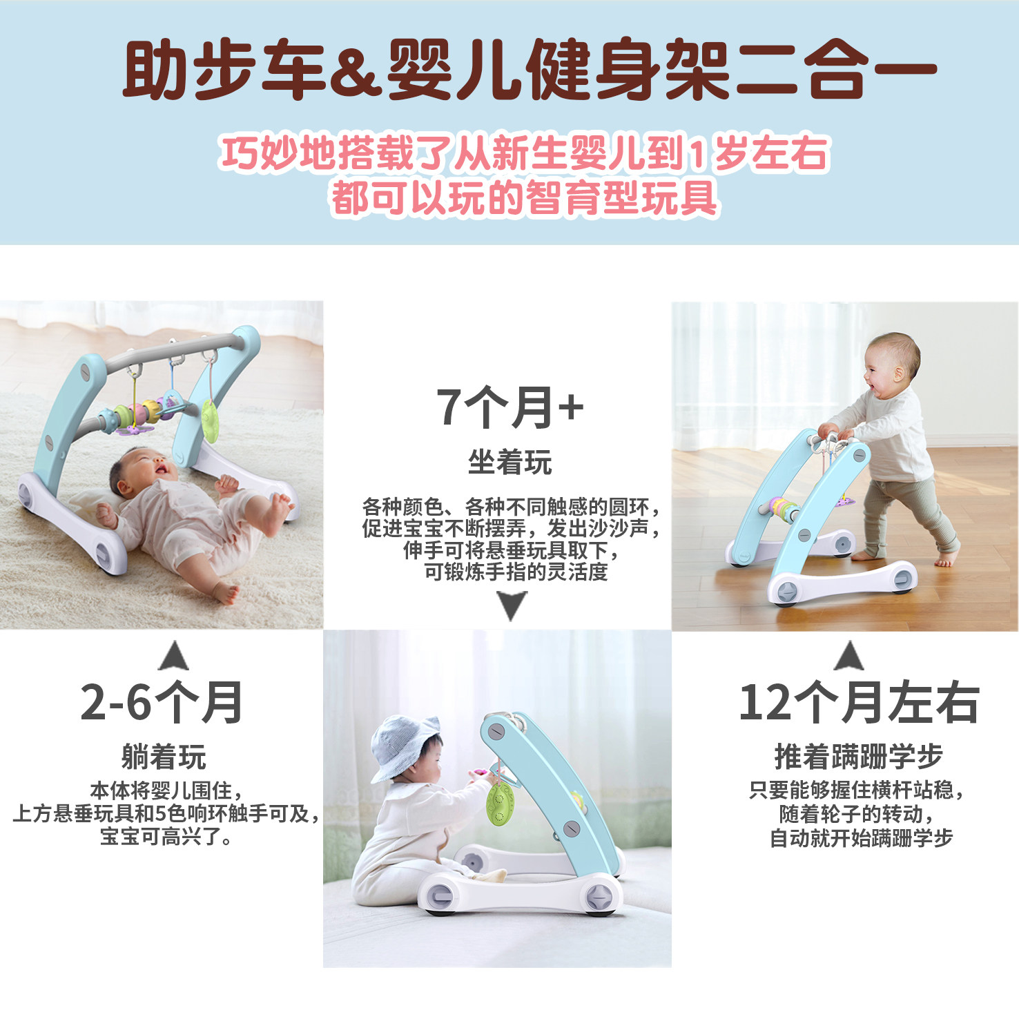 Japan's original baby fitness rack baby walking train multi-functional step-by-step trolley