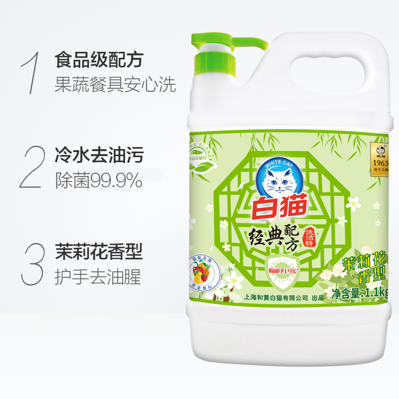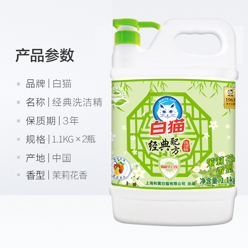 White Cat Classic Wash Essence 1 1kg * 2 bottles Home clothes Domestic dishwashing detergent washing fruit and vegetables to de-oil decontamination