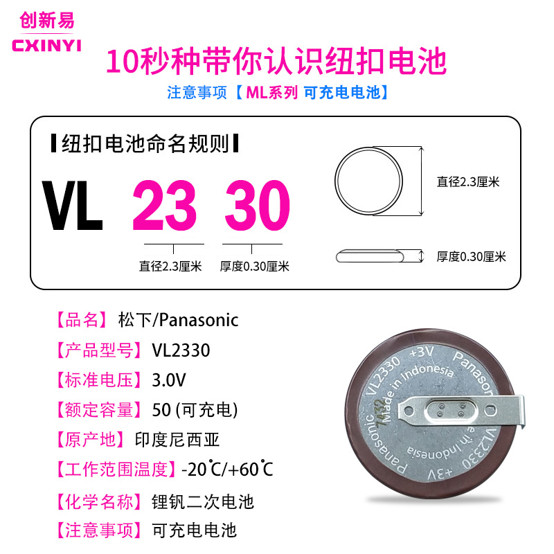 Panasonic Button Knob Battery VL2330 3V Rechargeable Cruiser Remote Control Button Knob Battery Cruiser Key
