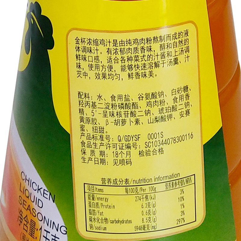 Cantonese Master's Gold Cup Condensed Chicken Juice seasoned juice whole box 1kg * 6 bottles of saucepan soup Flower chia hotpot soup bottom seasonings