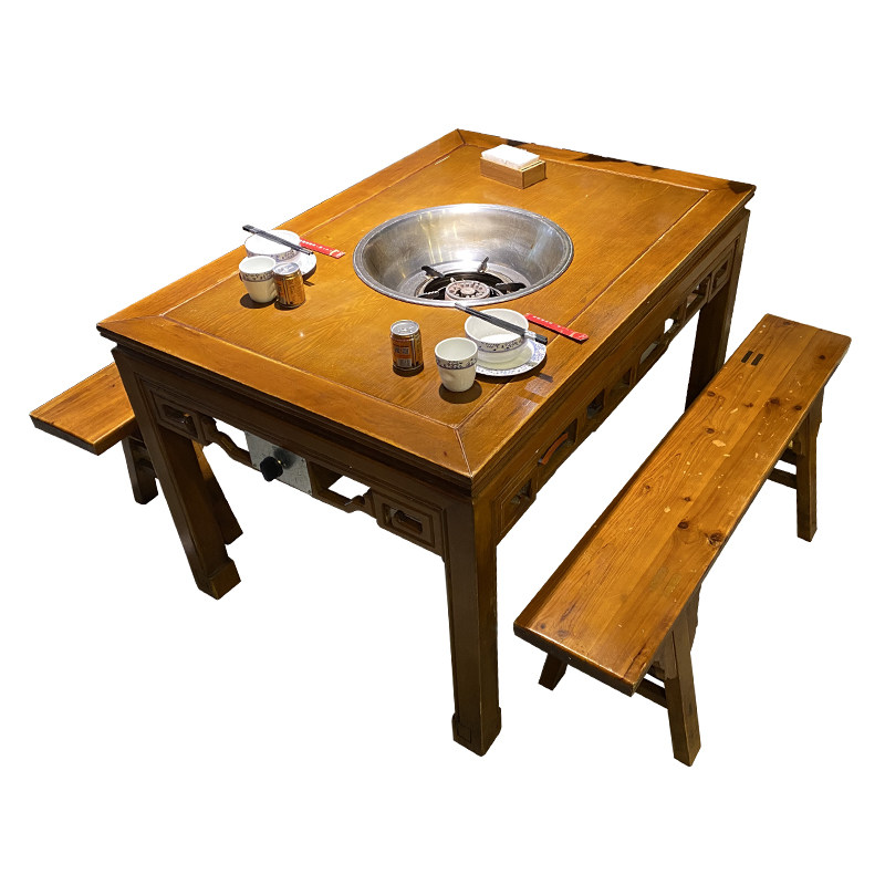 Hot pot table commercial marble skewer hot pot table gas stove induction cooker integrated smokeless hot pot restaurant combination
