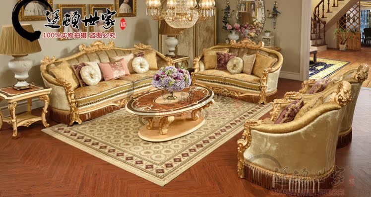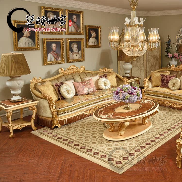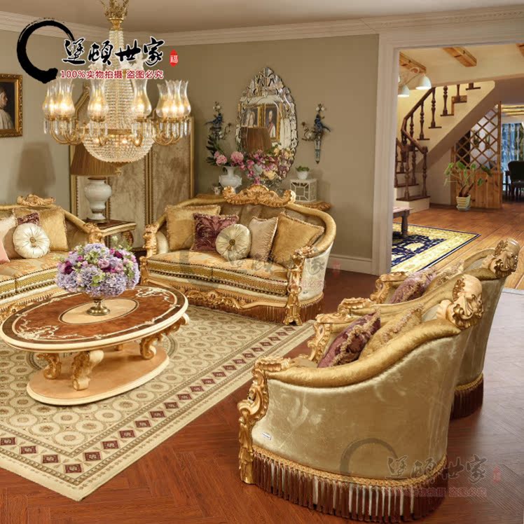 Eurostyle solid wood carved genuine leather living room 123 Composition sofa Living room Large terrace number of leather art extravaganza Neoclassical furniture
