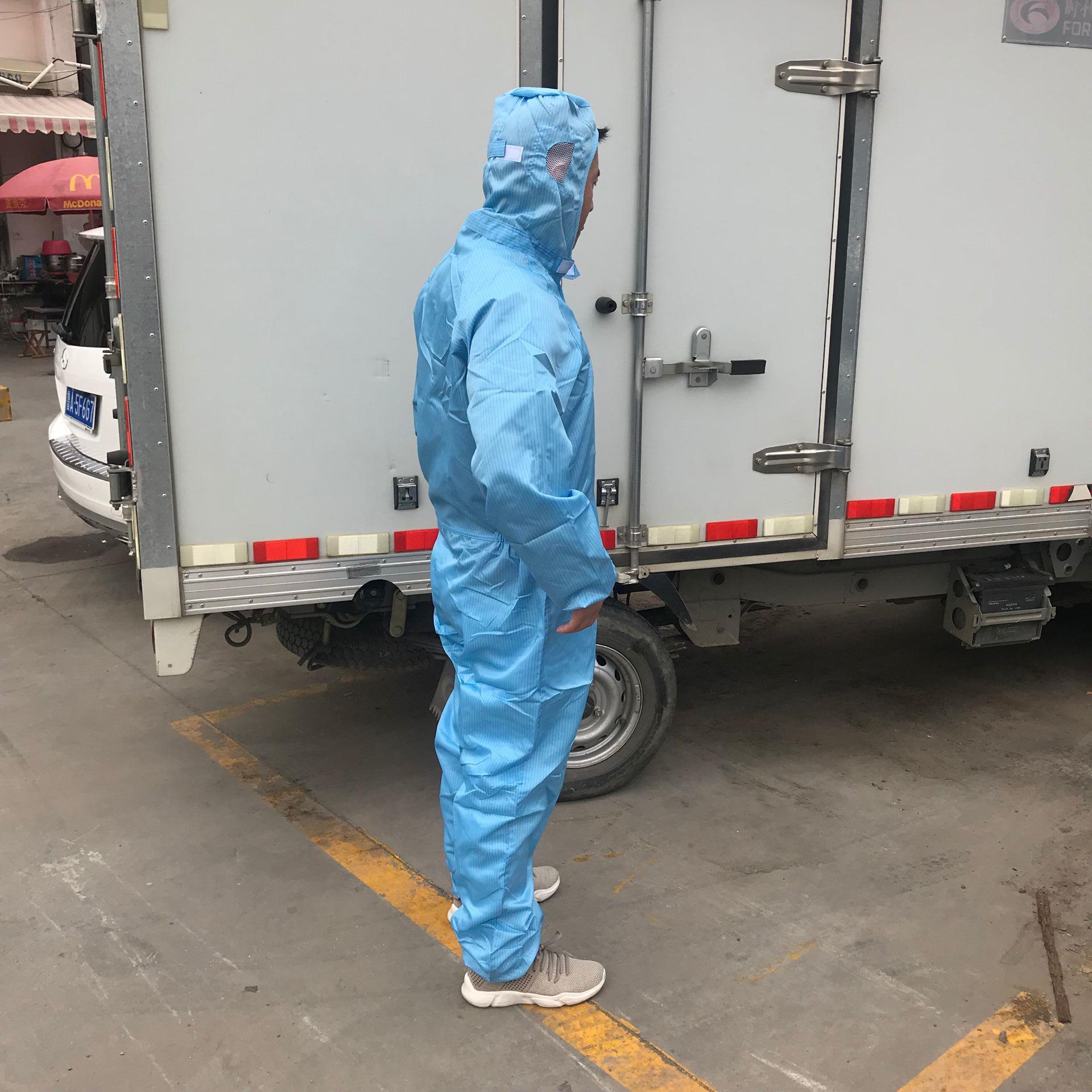 Dustproof clothing spray paint protective clothing anti-static clothing workshop anti-static one-piece blue hooded overalls extended version