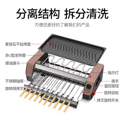 Electric oven household smokeless barbecue grill barbecue Pan Barbecue Grill electric baking pan automatic rotating electric keg machine