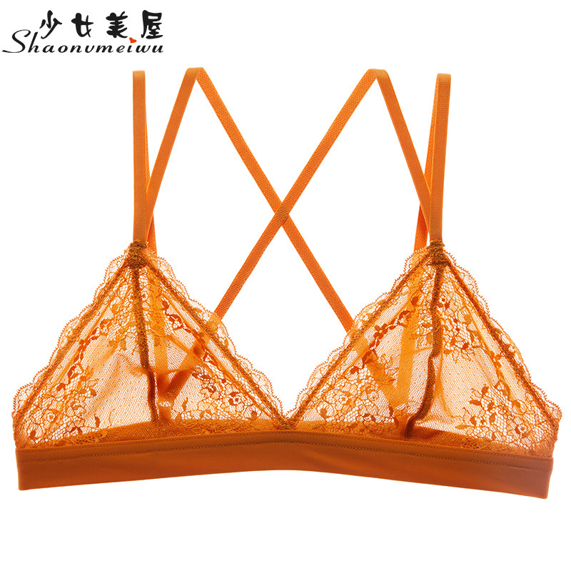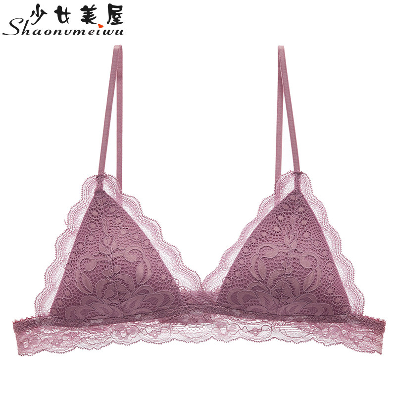 (4 pieces of 89 yuan sexy lace beauty back ultra-thin French triangle cup without rims girls underwear bra small chest