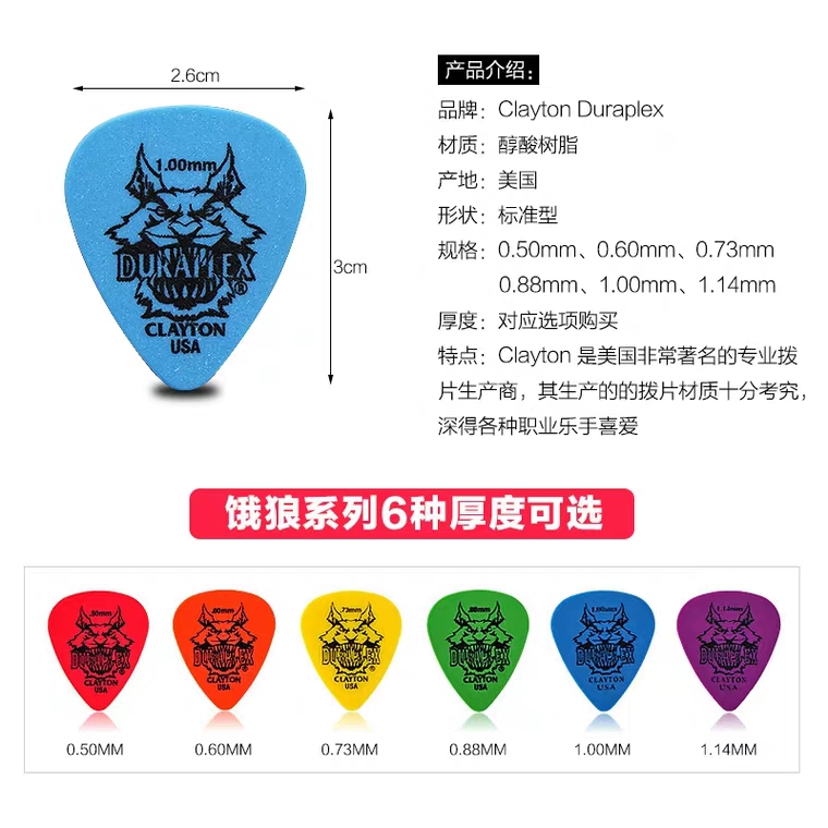 American-made CLAYTON hungry wolf standard DURAPLEX electric guitar folk acoustic guitar bass picks