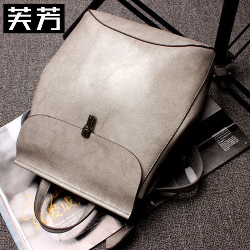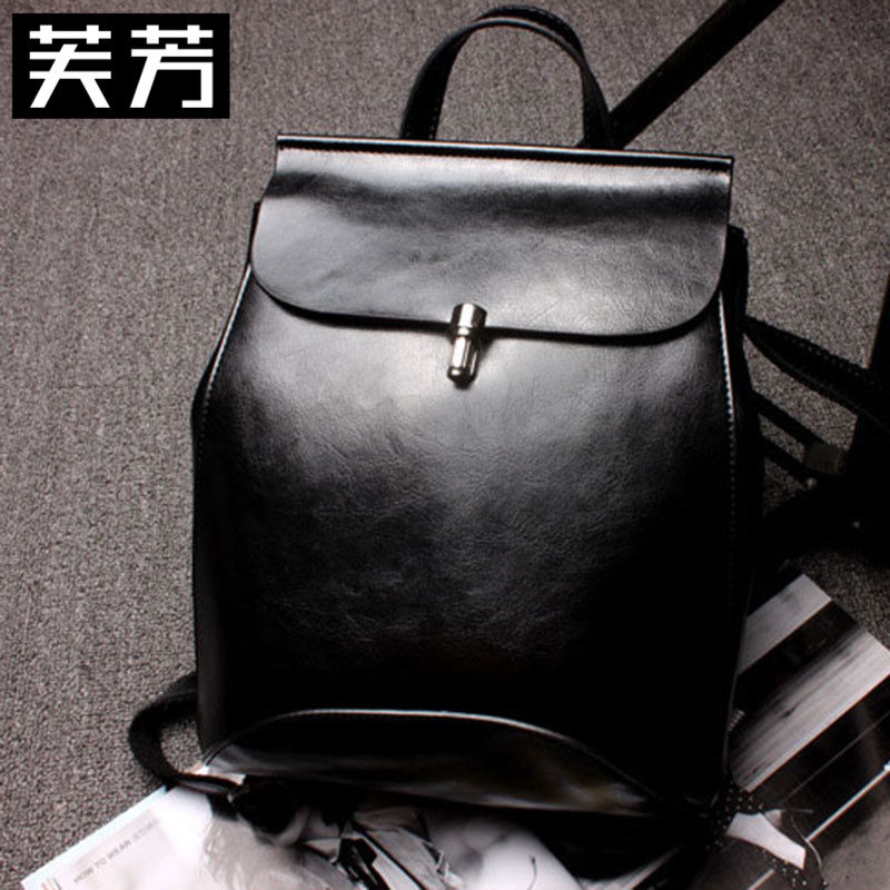 Fu Fang 2022 new Korean fashion Joker tide oil wax cowhide women's bag Korean style backpack solid color backpack