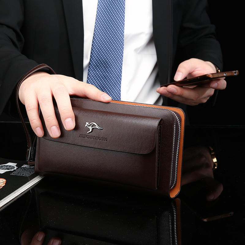 Biden Kangaroo Handbag Men's Leather Cowhide Wallet Large Capacity Business Clutch Double Drawcord Soft Casual Clutch