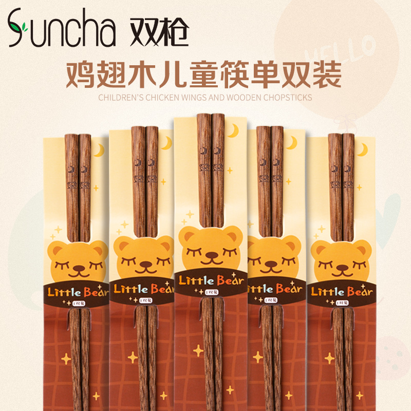 Double Gun Chopsticks Household Solid Wood Chicken Wings Wood Chopsticks No Paint No Wax Kid Practice Chopstick Day Style 1 Double Children Study Chopsticks