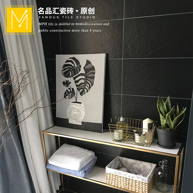 Foshan black slate tiles All-ceramic concave and convex floor tiles Powder room antique tiles Living room floor tiles designer