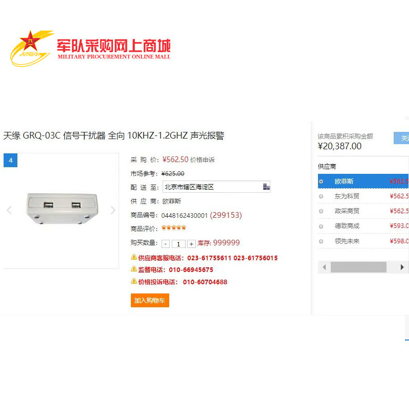 Tianyuan GRQ-03C signal jammer omnidirectional 10KHZ-1 2GHZ sound and light alarm jammer