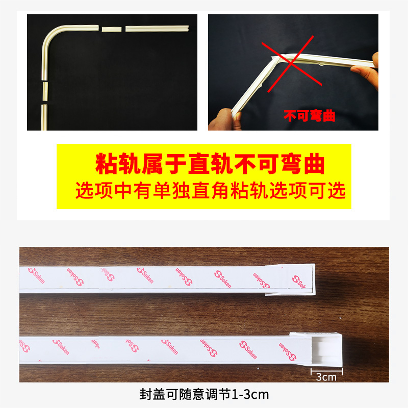 Hole-free installation curtain sticky rail Silent track Slide rail Side-mounted small door curtain rental house bay window partition rail strip