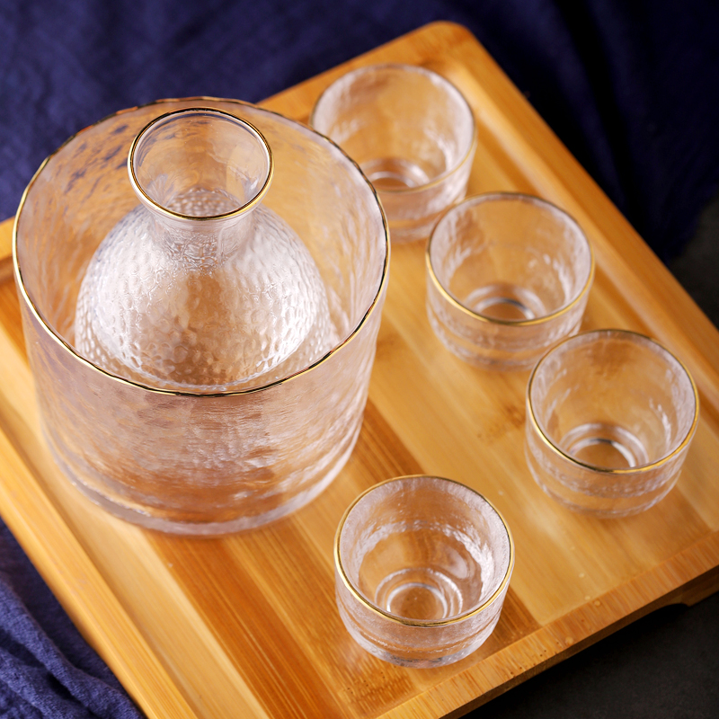 Japanese hammered household glass Phnom Penh sake pot set Small wine glass Rice wine warmer Soup jug tableware